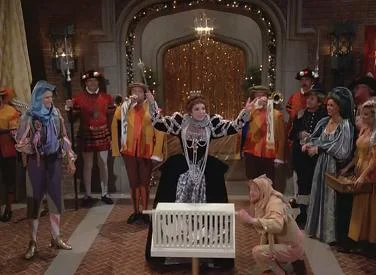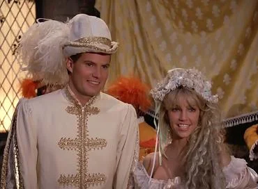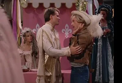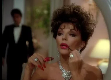 What would be a party without Krystle and Alexis fighting and this time it is a controlled battle. The two are engaged in a tug of war. C'mon, we know who is going to win this, the same person who has won every fight with Alexis. Alexis enjoys herself a mud bath, but it does allow her to change out of her Queen Elizabeth outfit and into a stunning red dress. The red dress is more appropriate attire for screwing Blake over. The evening comes to its climax with Alexis showing Blake's campaign film at the drug rehabilitation center. The film is then cut into Blake's visit to Cora's whore house (the footage is exactly the same as what happened in Season 6, at least that hooker rented the DVD) and suggests Blake likes the company of prostitutes. Who doesn't? Blake gives his obligatory, "What the devil is going on here?" before he takes his page boy (I mean Krystle) and leaves. Alexis is most pleased with how events turned out.